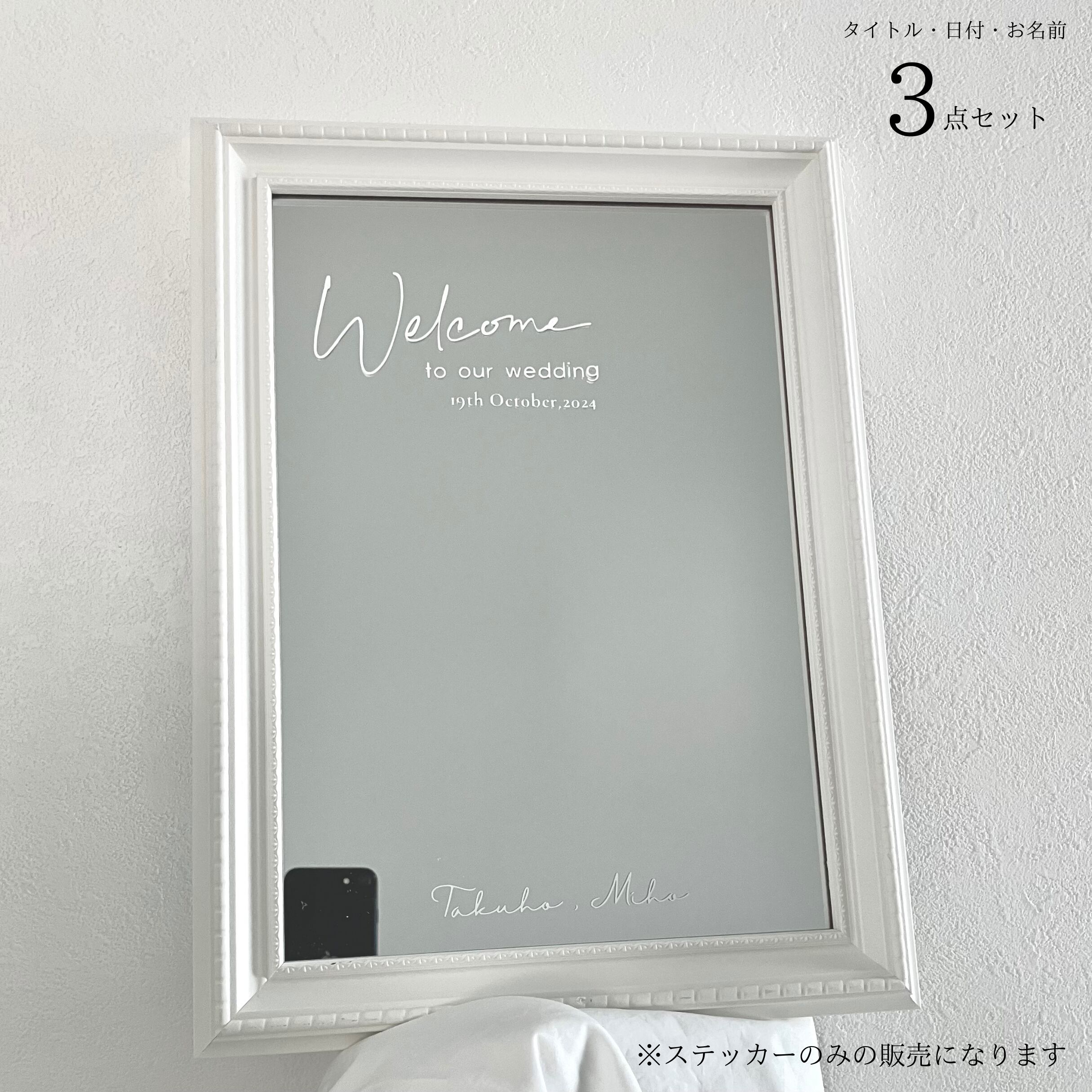 ◎ウェルカムスペース ステッカー 3点セット【タイトル、名前、日付】: タイトル 結婚式 鏡 ミラーショット ウェルカムスペース ホワイト ( ブラック グレー ゴールド) | onns' - オンズ -